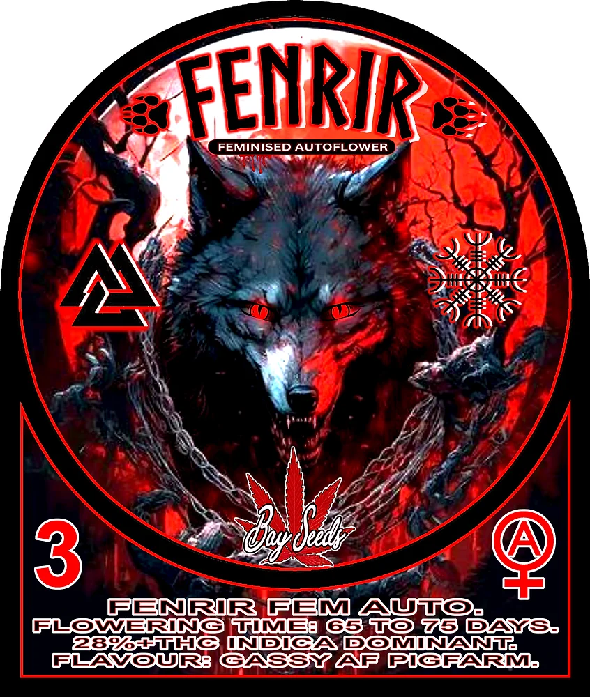 Introducing FENRIR, a Potent, ferocious feminized autoflower cannabis strain meticulously bred by Bay Seeds. A Power blend of Strawberry Gorilla Autoflower from Fast Buds also with Strawberry Gorilla Autoflower.