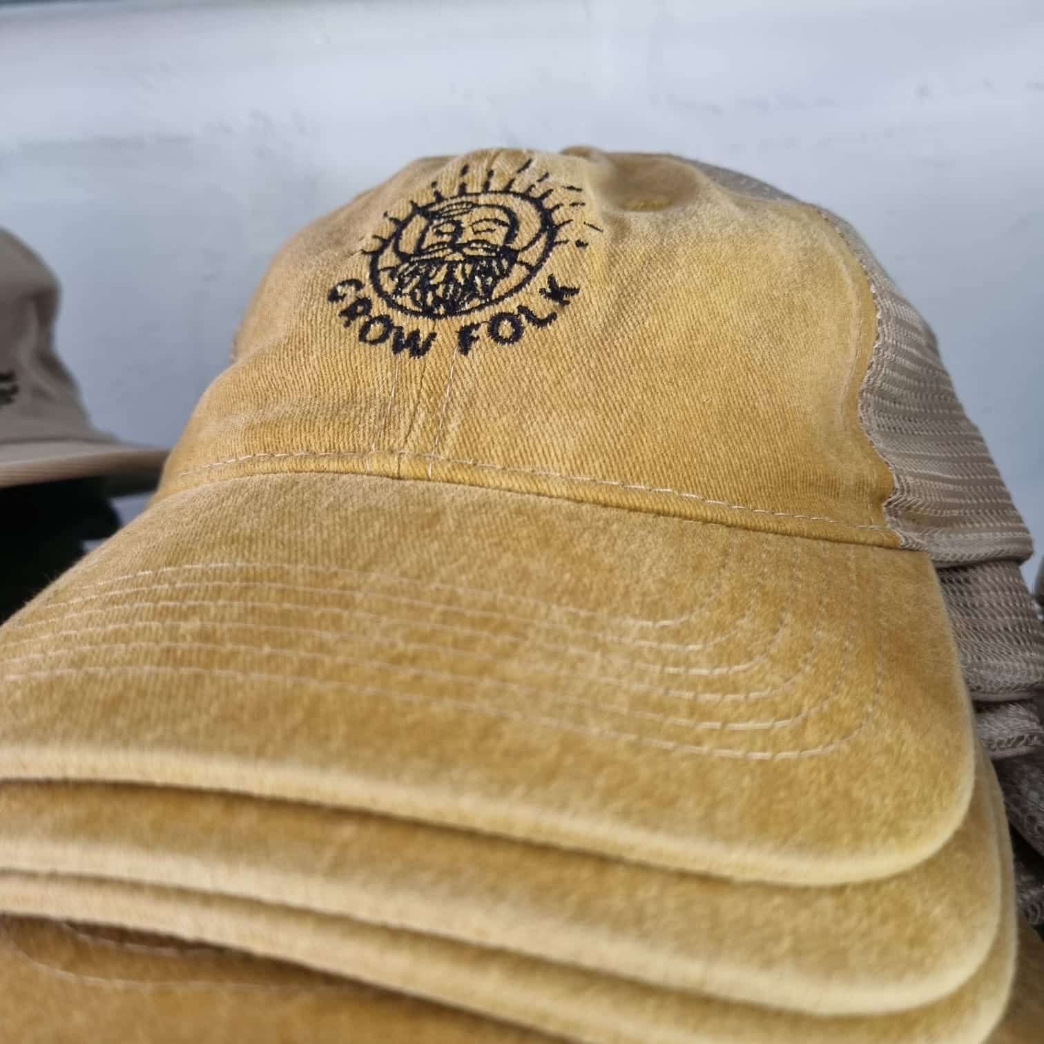 The Grower Cap is a heavy-washed 100% cotton cap in a two-tone design with hard mesh side and back panels for breathability! Features include 6 unstructured panels, embroidered eyelets, a self-fabric velcro strap for easy adjusting and a low-profile curved peak.