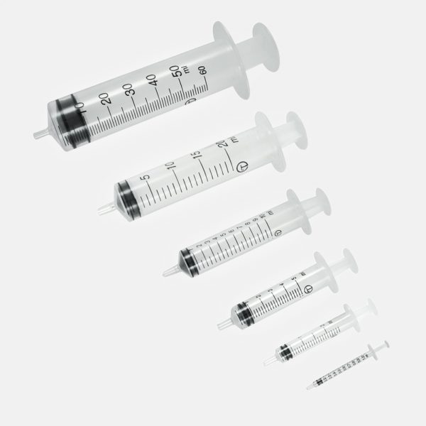 Sterile syringe with luer slip tip – individually sealed packaging. Sold per syringe. Various sizes available: 1ML, 5ML, 10ML, 20ML, 50ML